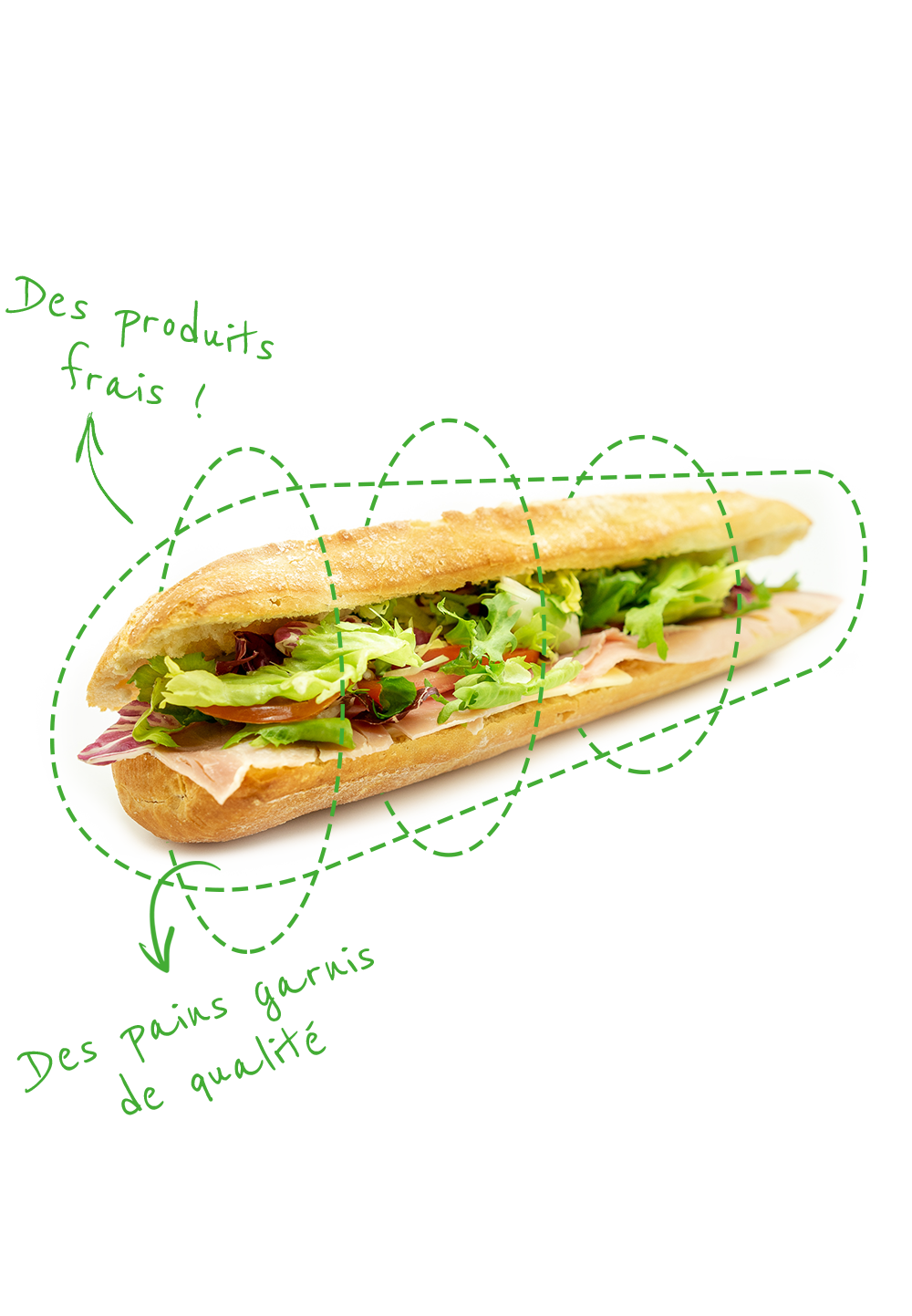 Nous préparons et distribuons nos produits frais du jour dans vos points de vente à travers la Belgique afin d’offrir à vos consommateurs des pains garnis de qualité, tant en termes d’ingrédients, qu’en termes de goût. Fini les produits industriels et peu gouteux! Offrez-leur le meilleur!